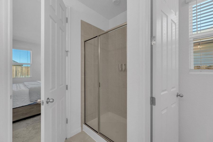 A secondary living area provides flexibility for a home office, game room, or media space. The primary suite includes a walk-in shower and modern finishes, while two additional bedrooms and a full bath offer plenty of room for guests or family.