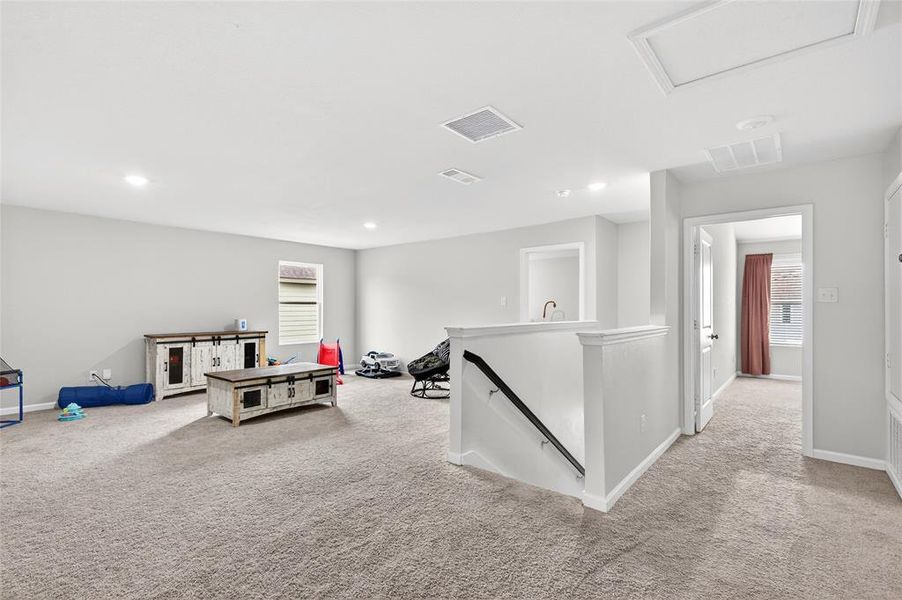 This home boasts the rare luxury of two primary suites. The secluded downstairs primary offers a peaceful retreat complete with a spacious ensuite bath, ideal for guests or multigenerational living. Upstairs, the second primary suite is complemented by a large living-loft area perfect for a media room, playroom, or home office, as well as 3 other bedrooms. The conveniently located upstairs laundry room makes daily routines effortless.