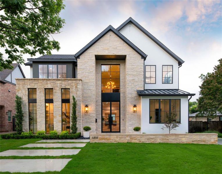 This stunning new construction by Stainback Construction is a bespoke Lakewood residence showcasing timeless architecture and modern amenities—highlighted by a 559-square-foot fully plumbed back house not included in the main home's square footage. Situated on a .23-acre lot, the home’s design reflects thoughtful craftsmanship and elevated livability at every turn. At the center of the home is an exceptional eat-in kitchen, featuring a Wolf commercial range, built-in SubZero refrigerator, and ice maker. A fully outfitted butler’s pantry complements the space with a built-in Miele coffee maker, Wolf microwave and wine fridge—ideal for entertaining. Throughout the home, custom White Oak inset cabinetry with soft-close functionality pairs beautifully with designer lighting and premium finishes. Every detail speaks to quality: 9” wide-plank hardwood floors, Pella windows and doors, and the Brilliant Smart Home System offering effortless control of lighting, speakers, thermostats, and window shades. The primary suite is a luxurious retreat with electric window shades, dual vanities, a soaking tub, a 100-square-foot stand-alone shower, heated floors and two private water closets outfitted with Neorest Toto Bidet toilets. A California Closets system completes the expansive custom walk-in closet. Additional features include a downstairs study with built-in cabinetry, an upstairs family room with wet bar and beverage fridge, and a dedicated workout room that can work as a 5th bedroom. Step outside to a large, fully turfed backyard with a sprinkler system, board-on-board privacy fence, and a covered patio with a ceiling fan, ideal for year-round enjoyment. Enjoy the oversized two-car garage with epoxy flooring and custom cabinetry, as well as the upstairs back house offering a bonus bedroom, half bath and mini kitchen. Zoned to Lakewood Elementary, this one-of-a-kind property offers a rare blend of luxury, function, and exceptional design. Welcome home!