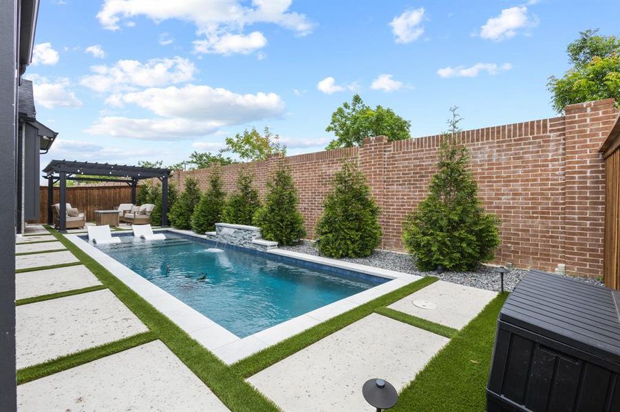 Step outside to your own private retreat. The backyard is built for entertaining, complete with a sparkling pool, outdoor kitchen and BBQ, plenty of seating space, and even an outdoor shower—perfect for enjoying warm Texas days.