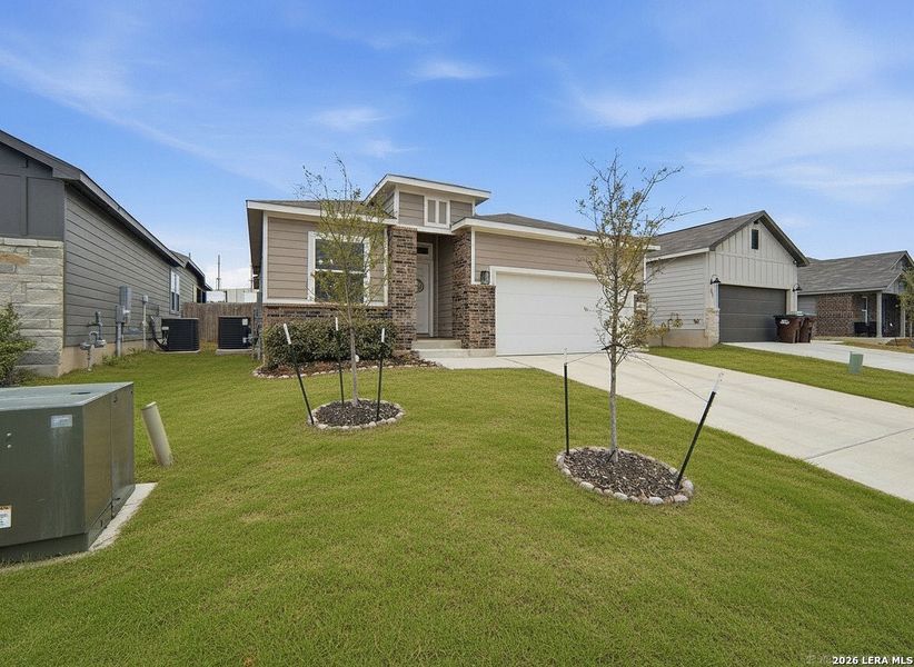 Welcome to the home that truly has it all. This nearly brand new, one owner 3 bedroom, 2 bath beauty showcases custom, top of the line finishes and designer touches that set it apart from anything else in the neighborhood. From the moment you walk in, you'll notice the elevated details and intentional layout. A dedicated dining room creates the perfect space for hosting holidays and dinner parties, while the open living area flows seamlessly into a stunning kitchen featuring gas cooking. A dream for anyone who loves to entertain or cook like a pro. The primary suite is nothing short of luxurious. Enjoy a spa-inspired bathroom with an oversized walk-in shower that feels straight out of a magazine, plus a massive walk-in closet with room for everything, and then some. Need flexibility? One secondary bedroom easily transforms into a private home office, nursery, or gym. Whatever fits your lifestyle. Step outside to your covered patio and unwind with no back neighbors. Just peace, privacy, and room to breathe. And the lifestyle doesn't stop at your front door. Residents enjoy access to a beautiful neighborhood pool and park, perfect for cooling off during Texas summers, gathering with neighbors, and creating lasting memories. This home offers the feel of new construction without the wait, packed with upgrades you won't find in builder grade homes. Immaculate. Move in ready. Turnkey perfection.