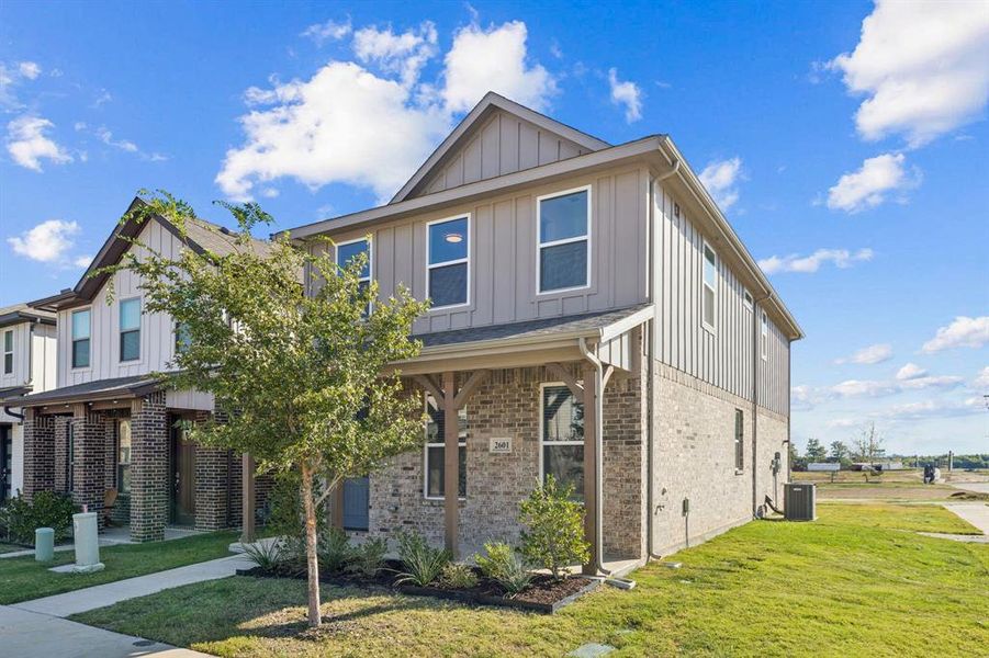 CORNER LOT! HEB ISD! LOCATION, LOCATION, LOCATION!! Beautiful 3-bedroom, 2.5-bath home situated on a desirable corner lot in the new phase of Lakes of River Trails, located within the highly acclaimed HEB ISD! Enjoy charming curb appeal with a spacious covered front porch before stepping inside to an inviting open-concept layout featuring wood-look flooring throughout the entire main level, crown molding, and recessed lighting. The kitchen sits at the heart of the home, offering a large center island with breakfast bar, stunning quartz countertops, stainless steel appliances, a stylish backsplash, and a deep single-basin sink. Upstairs you’ll find all bedrooms plus a convenient laundry room. The primary suite boasts soaring vaulted ceilings, a generous walk-in closet, and a spa-like bath with a large standalone shower. Both secondary bedrooms also feature walk-in closets. A perfect blend of modern design, comfort, and function in a highly sought-after community!