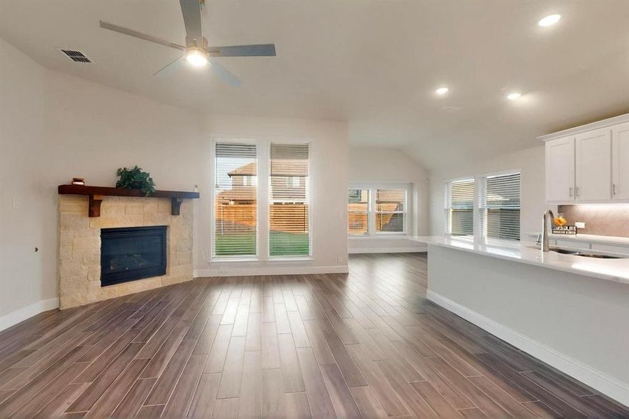 GET $8,400 LENDER CREDIT TO REDUCE RATE THRU JVM LENDING!!! You have found THE ONE at a phenomenal price!!! Built by Bloomfield Homes in 2024 with roughly $56,000 of premium finishes and upgrades!!! This 4 bedroom 3 FULL BATH single story gem is nestled in the ever so coveted Devonshire Community with tons to offer its residents! This Beauty is part of Bloomfields Jasmin plan with its open concept, lots of windows and tons of natural light! Kitchen comes equipped with sleek custom cabinetry, stylish quartz countertops and backsplash, gas cooktop, stainless steel appliances, breakfast bar, Island, can lighting and walk in pantry! Gorgeous wood look ceramic tile flooring, Can lighting, Ceiling fans, Faux wood Blinds throughout! Spacious living area with beautiful gas stone fireplace!! Awesome Mud Room in laundry area! Large primary ensuite has elegant vanity with dual sinks, quartz counters, decorative lighting and hardware, walk in closet, separate shower with beautiful tile and relaxing garden tub! 2 other full baths have lovely vanities and designer tile!!! Step outside to an awesome yard with nice fence and covered patio! Family Friendly community with resort-style living and excellent schools!! Community offers fabulous amenities that include: pool, playground, jogging and bike trails, greenbelt, sand volleyball, basketball courts and club house! Take advantage of forneys Opportunity Central Campus just minutes away with tons for all ages to enjoy!! This is a huge bonus! You need to come and check out this truly incredible home with all that it has to offer! You will not be disappointed!