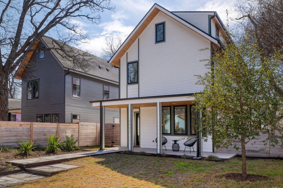 Welcome to the epitome of modern urban living in the coveted Holly neighborhood with income producing potential from the garage apartment! This luxurious Alchemy Builders new construction home has everything you could possibly want: 3614 total square feet, 4 beds/3.5 baths in the main home (3309 sf), corner lot with alley access, plus a double carport with a sleek 1 bed/1 bath garage apartment (305 sf) above it which is perfect for guests, an office or even to use as a STR. Step inside to view the stylish interior with high-end finishes and bright natural light that floods in through the huge windows, showcasing the wood and tile flooring. The open-concept layout seamlessly connects the living, dining, and kitchen areas, creating a perfect space for entertaining. The gorgeous modern kitchen features quartz countertops, tile backsplash, a center island, ample counter space, top-of-the-line appliances, and an abundance of contemporary cabinetry throughout. The home is situated on a large lot with spectacular trees that makes for beautiful views from the bedrooms. It is already plumbed to be “outdoor kitchen ready” so you can take full advantage of entertaining and relaxing in the front yard. This is truly an urban oasis in 78702, you'll have privacy and space but live blocks from Downtown, Town Lake and some of the best entertainment and restaurants in the city (Launderette, La Barbecue, and more). This is a truly special property with innovative elements woven throughout, must see this gem!