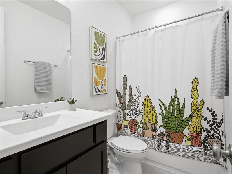 The primary suite is a peaceful retreat, highlighted by an extended bay window that fills the space with natural light. The ensuite bath offers a spa-like feel with a deep standalone soaking tub, separate vanities, a walk-in shower, and a generous walk-in closet. Two secondary bedrooms share a full bath, while the fourth bedroom includes its own private ensuite - perfect for guests or multi-generational living.