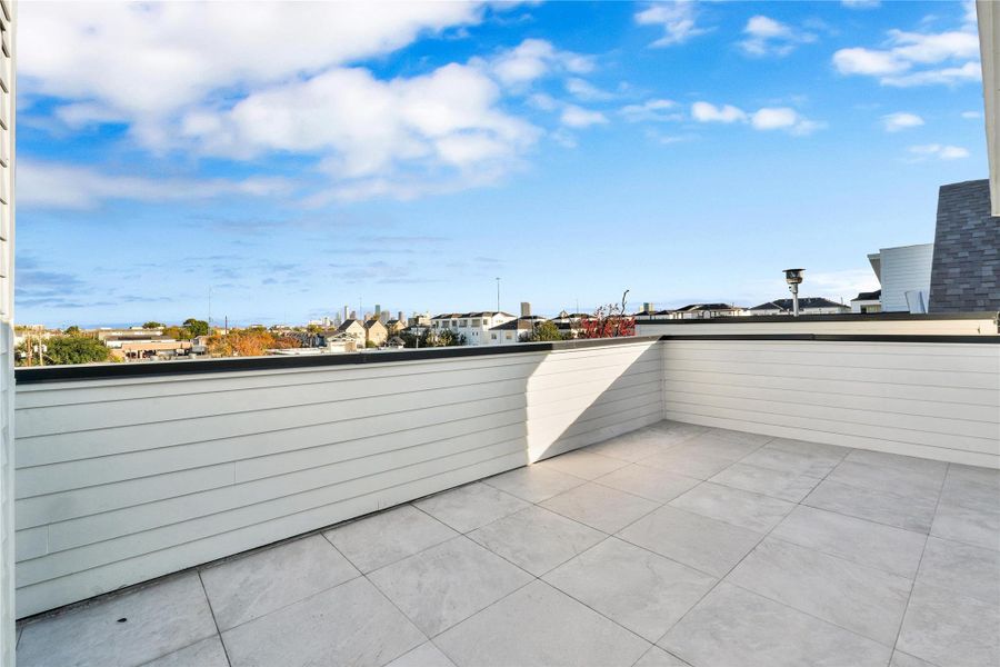 Last Unit Available! Welcome to 5439 Darling St, the last available front unit in this newly constructed gem in the heart of Cottage Grove. This 3-story home offers three bedrooms, each with its own en-suite bathroom. The first-floor junior suite features a private entrance, making it ideal for a home office, guest suite, or business use. Enjoy luxurious finishes throughout, including Taj Mahal kitchen countertops, custom ceiling-high cabinetry, a striking island, epoxy-coated garage floors, engineered wood floors, and elegant tile work in every bathroom. The spa-like primary suite includes a walk-in closet and a fully custom shower. The open-concept second floor features a gourmet kitchen, spacious living and dining areas, and a large balcony. Additional highlights include a cozy yard, a spacious two-car garage, and a rooftop deck with stunning views of the Houston Downtown skyline. Outside any flood zones and with no HOA.