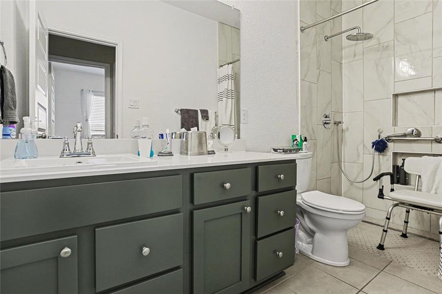 The private primary suite serves as a relaxing retreat, complete with a spa-like bathroom featuring an oversized shower, a separate garden tub, and a generously sized walk-in closet—blending functionality with a touch of luxury.