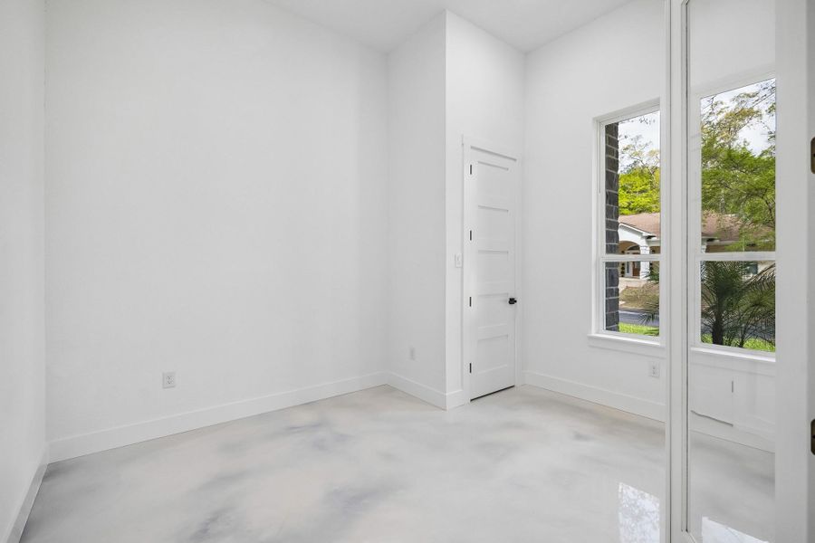 Located in the Elkins Lake community of Huntsville, TX. This 2,701 sq. ft., 100% masonry home combines modern luxury with quality craftsmanship. Featuring 12’ and 10’ ceilings, epoxy flooring, abundant natural light, and an open-concept layout. The gourmet kitchen includes European high-gloss cabinets, a 48” gas double oven with 8 burners, voice-controlled hood vent, drawer microwave, WiFi island outlets, and a workstation sink. The spacious primary suite offers a massive 12’ custom closet plus an additional closet and a spa-style bath with stone PVC tub/shower and dual 7’ vanities. Enjoy a vapor fireplace, 8’ interior doors, bidet toilets, huge laundry room, and 200-amp service. Relax on the covered patio with outdoor kitchen (outdoor kitchen is optional). Backyard is prepped for a pool. Includes landscaping, sprinklers, gutters, engineered drainage, 30-year shingles, and 1-2-10 builder warranty.