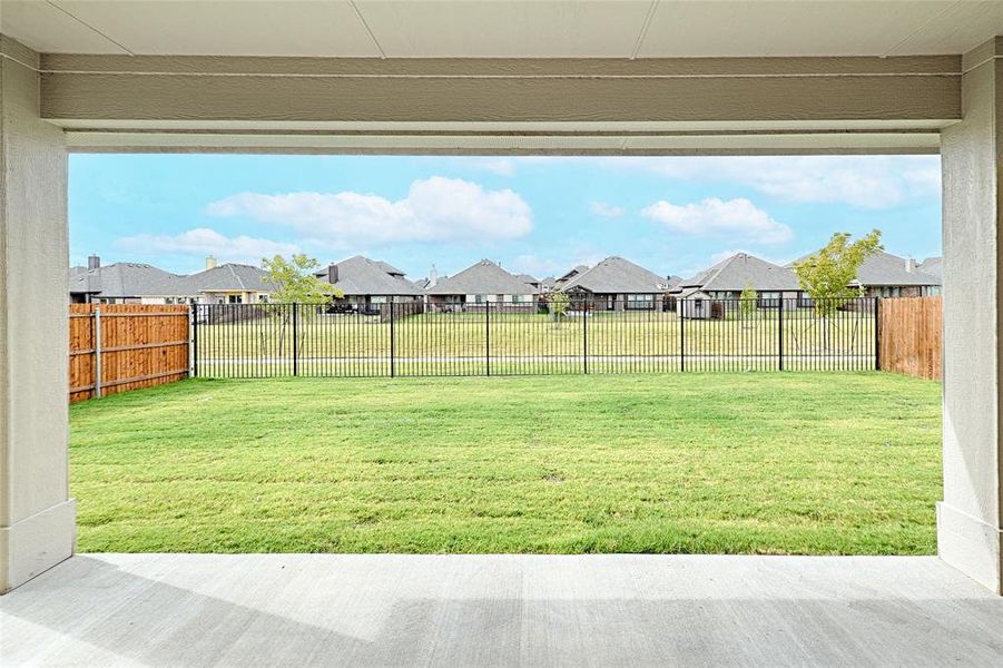 The ROTUNDA ENTRY sets the tone for this spectacular beautifully, design packed with upgrades and situated on a GREENBELT site; you’ll enjoy both inside and outside! Dynamic Brick and Stone exterior with CEDAR garage door and an 8' Mahogany door with glass and iron details. SITE-FINISHED hardwoods adorn most of the downstairs, while the family room displays a stunning STACKED-STONE fireplace and picture windows with a greenbelt view. The open kitchen has a built-in stainless steel DOUBLE oven, GAS cooktop, wood vent hood, buffet, and EXOTIC granite tops. A giant primary suite fits all your furniture. The bathroom features a garden tub with a separate sunken shower. A warm color palette was chosen with designer bath tiles and plush carpeting. Covered back patio with a GAS DROP for grilling, 2'' Faux wood blinds, full RAIN GUTTERS, and 6’ stained wood fencing with metal posts and 2 gates. All in a friendly and welcoming master-planned community with a pool, playground, trails, dynamite social committee, and A-rated Joshua schools!