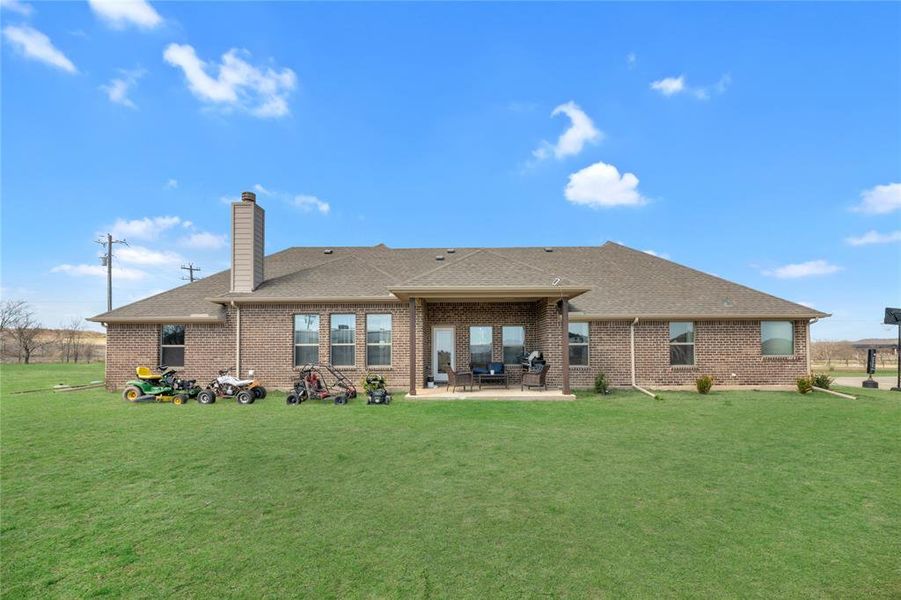 Sprawling over an acre of land in a community with no HOA and low property taxes of just 1.3%, this nearly brand-new residence offers the freedom and tranquility of true Texas ranch-style living. The rare unrestricted land provides a blank canvas to bring your dreams to life—whether that means gardening, keeping chickens, building a workshop, barn, or pool, or simply enjoying the privacy, peace and security watching your kids and pets roam freely. Step inside to a welcoming foyer that opens to a bright and inviting family room, anchored by a cozy fireplace and large windows that bathe the space in natural light. The stunning white-on-white kitchen is both beautiful and functional, featuring quartz countertops, a center island with elegant pendant lighting, a walk-in pantry, and a charming window next to the sink perfect for your fresh herbs. The kitchen flows effortlessly into the spacious dining area, creating an ideal setting for everyday meals and memorable gatherings. Just off the family room, the fourth bedroom tucked behind french doors offers incredible flexibility and can easily serve as a home office, playroom, or guest suite depending on your family needs and wants. At the end of the day, retreat to the peaceful primary suite complete with a luxurious bath featuring a large soaking tub, separate shower, dual quartz vanities, and a spacious walk-in closet with convenient access to the utility room. Wood-look ceramic tile runs throughout the main living area, offering both durability and style—perfect for busy households with kids and pets. Located in highly sought-after Maypearl ISD, this property combines the serenity of country living with convenient access to the shopping, dining, and amenities of the DFW Metroplex.