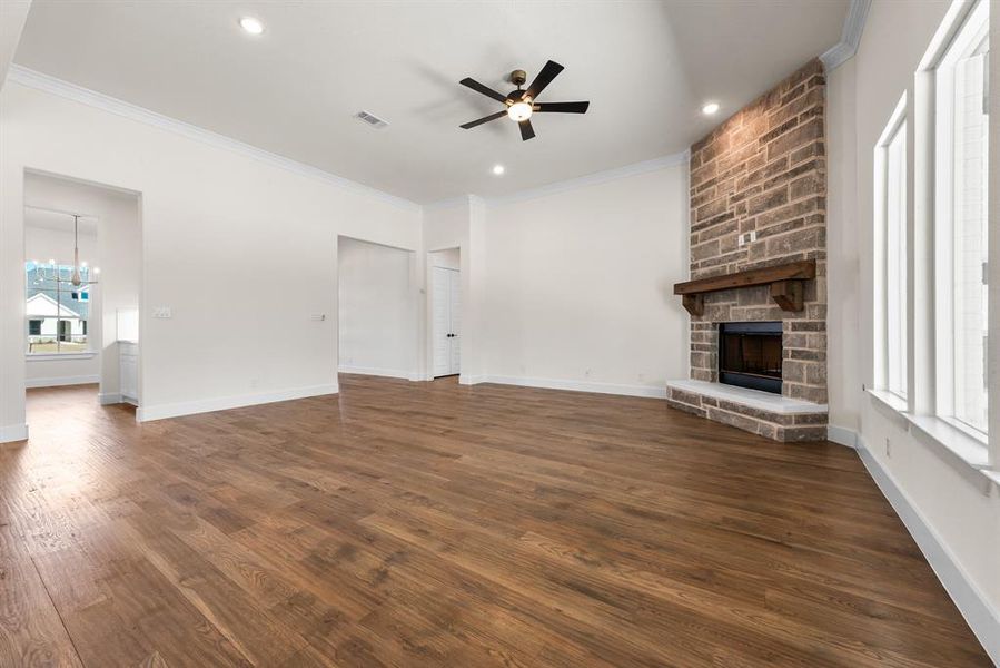 As you step through the front porch, you're greeted by an open foyer. To the right, a luminous dining room awaits. Adjacent to the foyer, discover two versatile flex rooms, adaptable to your every need—whether it be a home gym, office or creative space. Continue through to the heart of the home, to the family room adorned with a cozy fireplace, nestled near a charming nook and a chef-inspired kitchen boasting ample counter space and storage areas. On the right side of the home, three traditional bedrooms each feature a walk-in closet and are accompanied by two bathrooms for utmost convenience. For added entertainment, indulge in the media room, ensuring every member of the family has a space to fulfill their passions. On the opposite side, the owner's suite awaits, offering a sanctuary of luxury with top-quality features, a stunning owner's bath and an incredible walk-in closet. Lastly, step outside to the covered back patio!