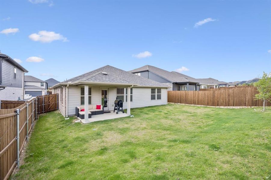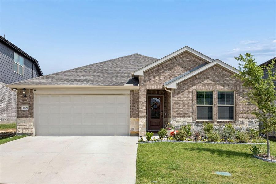 Welcome to this stunning, like-new 2024 built single story home in the sought after Cibolo Hills community of Fort Worth. Thoughtfully designed for modern living, this home offers 4 spacious bedrooms and 3 full bathrooms, including a private guest suite with its own ensuite bath, ideal for visitors or multigenerational living. The open concept layout is filled with natural light and complemented by soaring ceilings. The heart of the home features a bright and inviting living area, seamlessly connecting to a spacious dining area and a beautifully appointed kitchen. The chef-inspired kitchen showcases quartz countertops, subway tile backsplash, gas cooktop, electric oven, dishwasher, and a large center island perfect for gathering and entertaining. Luxury wide-plank flooring flows throughout the main living spaces, adding both style and durability. Step outside to a beautifully backyard with a covered patio, ideal for relaxing evenings or weekend gatherings. Meticulously maintained and truly move-in ready, this home offers both comfort and convenience, with easy access to Highway 287 and a short drive to downtown Fort Worth and surrounding areas.