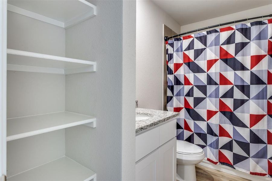 - Ceiling-VaultedWalk-In ClosetPantryDouble VanityWindow Coverings