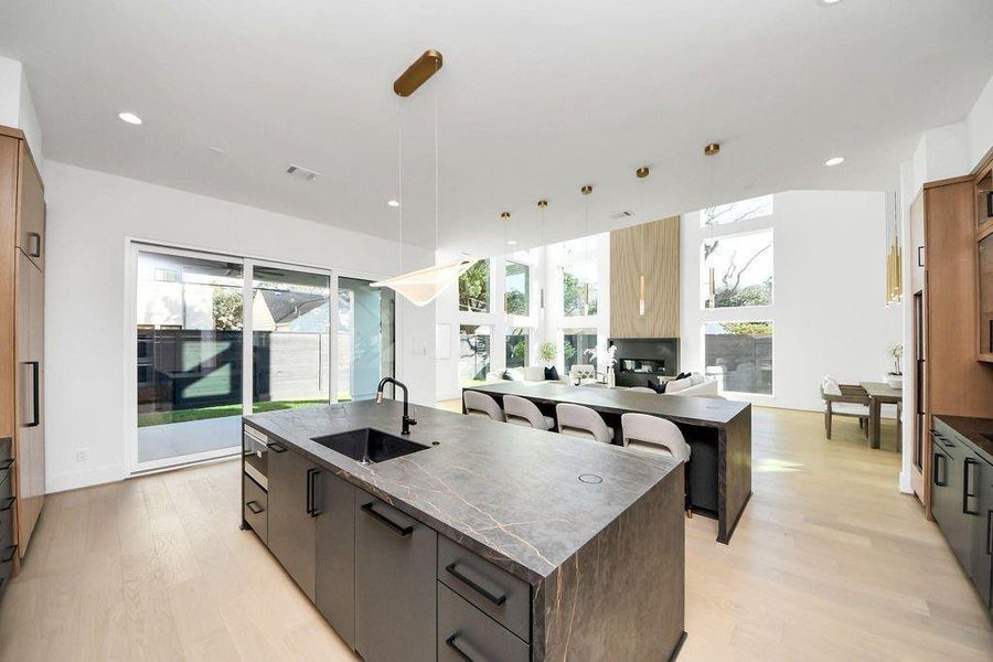 This home makes a lasting impression with soaring 35-ft ceilings, abundance of natural light, and a dramatic floating staircase supported by hidden steel beams, creating a true architectural centerpiece.The open-concept layout flows seamlessly into a two-toned chef’s kitchen featuring dual oversized islands, extensive storage, and top-of-the-line Miele appliances.Upstairs,a spacious game room with its own wet bar offers the perfect setting for hosting, while the expansive top-floor patio showcases incredible views, ideal for relaxing or entertaining guests. The home is elevator-ready and includes builders pool plans. Car enthusiasts will love the versatile garage with a roll-up door designed to accommodate a lift, allowing space for up to 4 cars. An outdoor patio with a built-in gas grill is perfect for summer gatherings.With its bold design, luxury finishes, and unbeatable walkable location, this residence offers a rare opportunity to own a true statement home in the heart of Houston.