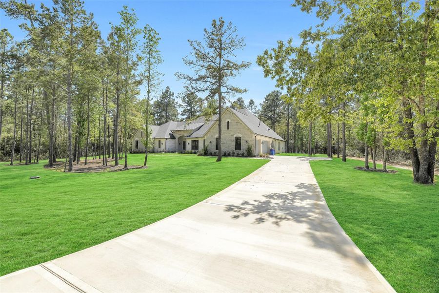 This prestigious acreage community is zoned to Magnolia ISD and conveniently located just minutes from HWY 249. This exquisite Tom Cox Jr. home sits on 1.5 acres and showcases exceptional craftsmanship with high-end finishes throughout. The gourmet kitchen is a chef's dream, featuring JennAir appliances, and quartz countertops. Hardwood flooring flows seamlessly through the main living areas, complemented by an exposed beam ceiling in the living room and extensive custom built-ins. Additional highlights include a formal dining room, private home office, game room, and secondary bedrooms-each with its own en-suite bath. The primary suite is truly a standout, offering a spa-inspired bathroom with a dual-head shower, soaking tub, separate vanities and generous his-and-hers closets. Step outside to a large covered patio complete with an outdoor kitchen and a dedicated pool bath-perfectly suited for a future pool. This exceptional home truly has it all - schedule your private tour today!