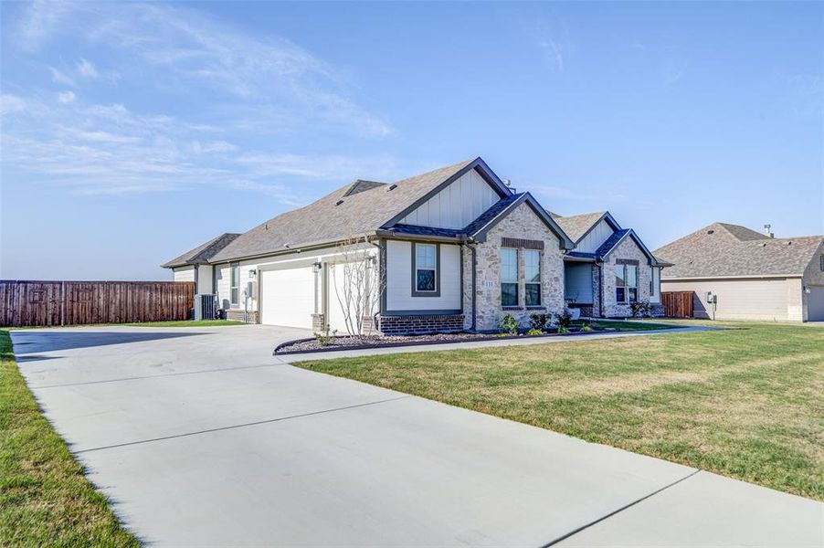 This spacious, newly constructed Riverside home is situated on an oversized, fenced lot, in a rural area just minutes from DFW! Four oversized bedrooms, two full bathrooms, and an enormous granite island joining the kitchen to the family room makes it ideal for entertaining large gatherings. A dedicated laundry room, multiple storage closets, concrete driveway, full landscape and irrigation package, large covered patio, and an upgraded 3 car garage make this a turn-key property for your growing family!