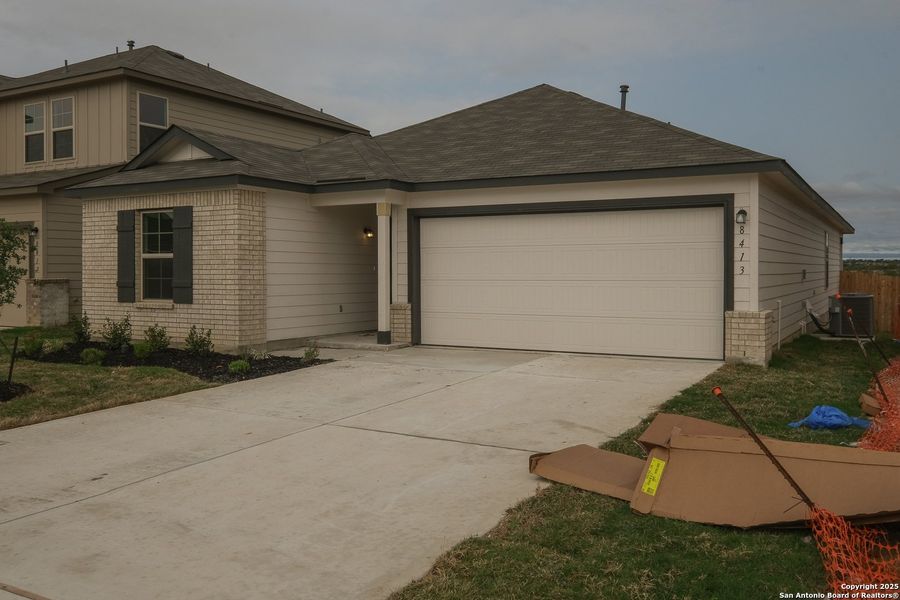READY NOW Welcome to this charming home located at 8413 Roadrunner Passage, San Antonio, TX. This beautiful home, offered for sale, presents a fantastic opportunity for anyone looking for a new place to call home. With 3 bedrooms, 2 full bathrooms, a flex room, and spanning 1,642 square feet, this pristine single-story new construction home was thoughtfully designed by M/I Homes. Upon entering, you are greeted by a welcoming open floorplan that seamlessly connects the living spaces, creating a cozy and inviting atmosphere throughout the home. The modern kitchen is a chef's delight, boasting sleek countertops, ample cabinet space, and modern appliances, offering both style and functionality for everyday living and entertaining. The home features a spacious covered patio, perfect for enjoying the outdoors and entertaining guests, making it an ideal spot for relaxation and gatherings. Additionally, the home offers a 2-car garage for convenience. The 3 well-appointed bedrooms provide comfortable retreats for rest and relaxation, while the 2 bathrooms offer modern finishes and fixtures for added convenience. Located in a desirable area of San Antonio, this home ensures easy access to local amenities, schools, shopping, dining, and entertainment options, providing the perfect balance of convenience and tranquility.