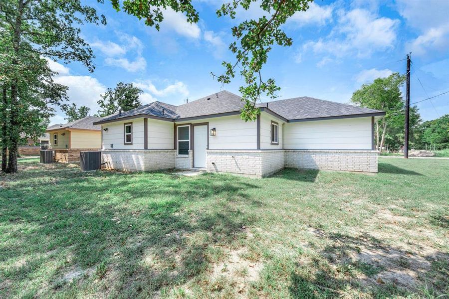 Don't miss this opportunity to own a new construction home, ideally situated on a spacious lot just minutes from Lake Tawakoni’s boat launch. This beautifully designed 3-bedroom, 2-bath home offers a modern open-concept layout, perfect for entertaining family and friends. The kitchen features granite countertops, custom cabinets, a built-in microwave with vent, smooth top electric range, dishwasher, and disposal—all-electric and energy-efficient for low maintenance living. Luxury vinyl plank flooring flows throughout the main areas, complemented by arched entryways. The primary suite includes a private bathroom with a granite vanity and a tub-shower combo, while the additional bedrooms share a stylish second bath off the hallway. A one-car garage with opener, concrete driveway and sidewalks complete the package. Conveniently located near schools, shopping, and recreation, this home combines comfort, quality, and affordability in one perfect package.