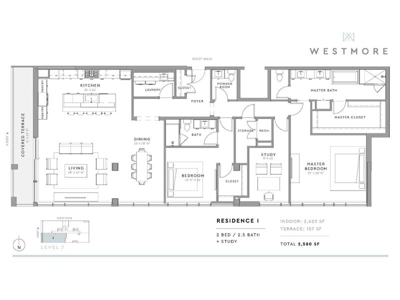 Final Penthouse 703 at The Westmore is a luxury residence in the Upper Kirby neighborhood with stunning views and the ultimate in privacy & convenience. Enter our elegant Penthouse with soaring ceilings, modern architecture & be captivated by the open living room, dining & kitchen spaces, completed by top-of-the-line Bosch appliances, including a gas cooktop & built-in wine fridge. Italian cabinetry provides ample storage, while expansive windows & high ceilings flood the rooms with natural light + breathtaking views. The tranquil primary suite is outfitted with a room-sized walk-in closet & bathroom with soaking tub + separate step-in shower. The private study measures 9 x 13 & full-sized laundry room has a sink & hanging space. Climate-storage is located within the residence. 2 parking spaces with EV charging capability, 24-hour concierge, fully equipped gym, lounge & terrace with a fire pit + grill. Be the first to call this gorgeous Penthouse home!