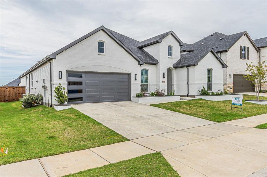 Subject property was built in 2024 by American Legend Homes Features four bedrooms three full bathrooms There is a second bedroom with a on suite theater formal dining room breakfast nook large great room LED light in closet Google Nest Doorbell camera Door lock (Eufy) with camera-remote lock and unlock capabilities Custom metal three way door with metal door frame Engineered hardwood floors throughout All windows and doors have sensors (ADT) Six night vision cameras that cover all angles of the exterior of the subject property Five Buner cooktop stove Double Oven Gas Burning Fireplace Custom Kitchen Gold Faucet Upgraded toilets in all bathrooms Upgraded Ceiling Fans with remote's Google voce automated lighting great room kitchen formal dining hallway Insulated garage door Exterior Brick Lined Flower Bed matching Brick exterior Plantation Shutters front of subject property both bathrooms and two bedrooms Upgrade large exterior patio fan Eco soft water system installed Alarm system with picture view control screens (Two) 7.1 Theater Surround sound Upgraded garage lighting