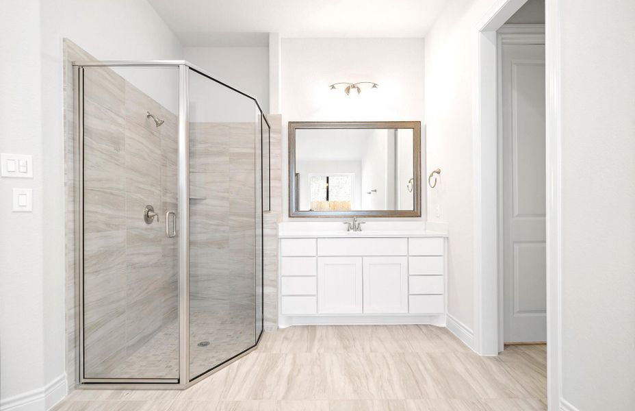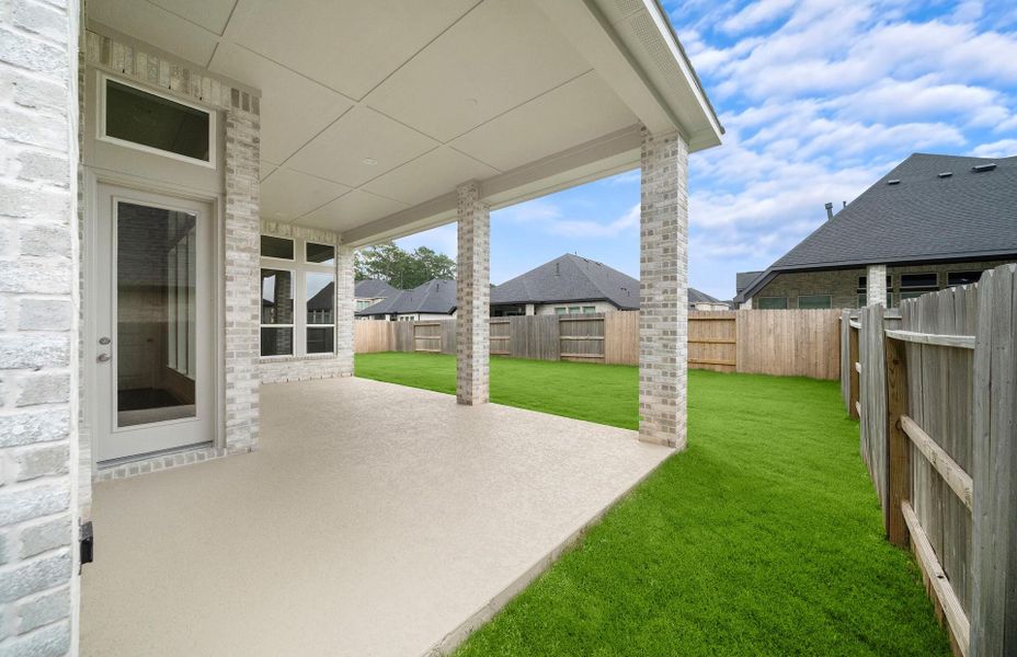 1-story home features an extended entry with 12' ceilings that opens to the spacious 22'x26' family room. The open living area with 12' ceilings, electric fireplace, and full wall of windows connects to the kitchen and casual dining. The master bath features standup shower with seat, freestanding tub, His and Hers vanities, and separate walk in closets. 27’x16’ extended covered patio overlooks the spacious backyard.