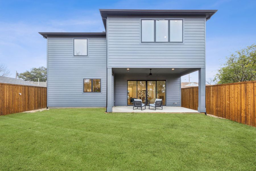 This generously sized single family residence is brand new to the market. Immediately upon entry you're greeted by an office that can be used as a bedroom and a full bathroom. Continuing past the grand staircase to the main living area you'll find a casual dining area, great room, and large kitchen, complete with a walk-in pantry, pocket office, and mud room. The living areas connect to the covered outdoor living space, making this plan ideal for entertaining. Upstairs there is a primary suite, two additional ensuite bedrooms, a laundry room and an additional gathering space. Designed by prominent firm Elm Residential in a Modern Farmhouse style, this home features board and batten and lap siding, stainless steel roofing accents, as well as oversized single-hung windows and a partial glass front door.