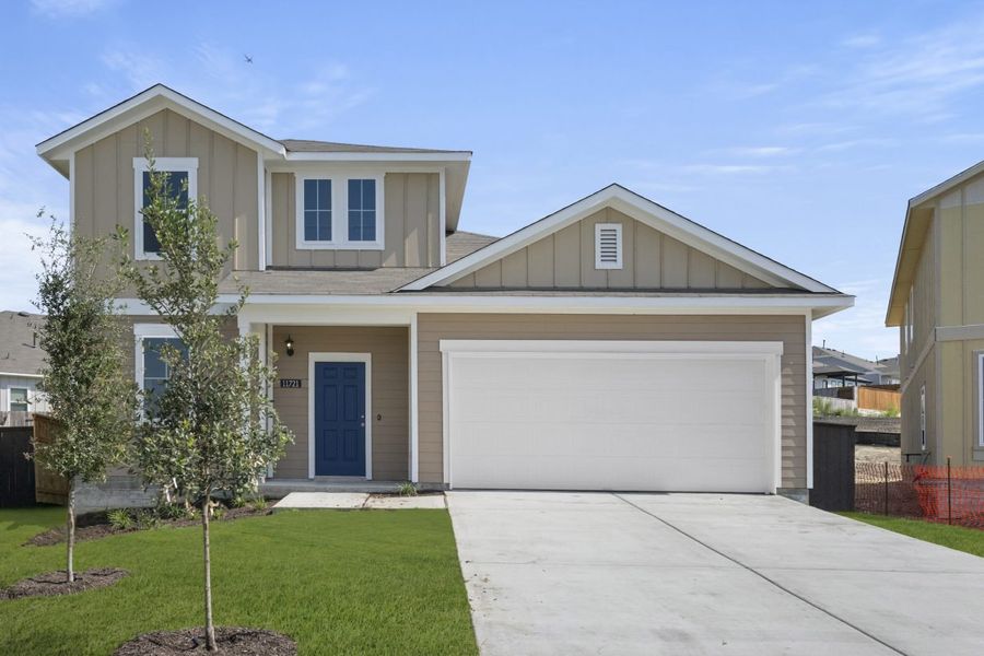 Located on a peaceful cul-de-sac, 11721 Domenico Cove’s two-story new home layout combines modern finishes and a functional floor plan. Inside the home, you’ll be greeted by premium finishes such as wood-look vinyl flooring through the main living areas and light brown cabinets with nickel hardware throughout. The kitchen features 42-inch upper cabinets, a large pantry, stainless steel appliances, and a center island. The first-floor primary suite highlights a walk-in shower, semi-private water closet, and a spacious walk-in closet. With a bonus downstairs flex room and an upstairs loft, there’s room here for work, play, and everything in between.