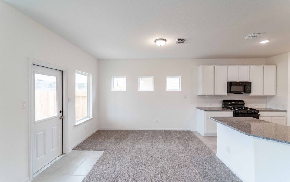 With convenience at the forefront, our Aquila floor plan will meet the lifestyle needs of most any family. Boasting 3 bedrooms and two full bathrooms, this single-story home is the perfect size for growing families or empty-nesters alike. As soon as you open the door, you are greeted by an elegant entryway that leads to the secondary and third bedrooms with the secondary bathroom in between. Down the hall, you'll pass the two-car garage. If you find yourself needing more storage space in the garage, opt for the larger garage and turn it into a 2.5-car or 3-car garage! Across from the other bedrooms resides the remote Master Bedroom. The attached Master Bathroom consists of a large vanity with cultured marble countertops and a huge walk-in closet. Looking to add an extra spark to the master bathroom? Choose to revamp your bathroom with a master luxury bath with a bathtub and separate shower, or a master super shower instead of a bathtub! The opportunities are endless. Tying the space together is the large family room with nine-foot ceilings, and the welcoming dining area the kitchen. The gorgeous kitchen includes sleek granite countertops, flat-panel countertops, and a wide kitchen island that is perfect for added counter space. You'll love entertaining your guests with the open-concept feel of the kitchen, dining room, and family room! Also, the sizable walk-in pantry will help store all of your essentials and more. Off the dining room, you will find the optional covered patio, which can be extended to fit you and your family's needs - the choice is yours. No matter what - whether you choose to keep your new home how it comes, or if you decide to add any of the options available, you will love living in your CastleRock Home. The Aquila plan is a gorgeous, flexible plan that is sure to please.