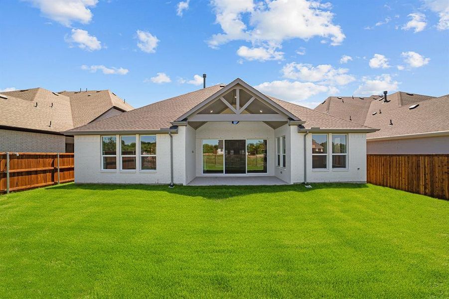Located in Northwest ISD! This stunning 2-story home provides a comfortable open floorplan with an Extra Suite off the foyer with an ensuite bath, perfect for multigenerational living. Sleek engineered hardwood flooring throughout! A convenient home office off the foyer provides privacy with barn doors and ample storage space. The chef kitchen features a spacious island and overlooks the well-lit great room. A sunlit dining area allows access to an expansive covered patio for outdoor entertaining. In from the garage, a HovHall with valet and laundry room keep your home tidy. The primary suite includes a private bath with freestanding tub and waterfall showerhead. A versatile upstairs loft and 3 secondary bedrooms allow for comfort for all. Greenspace backing and Farmhouse exterior - what's not to love? Located in Wellington, the neighborhood offers a variety of amazing amenities including a resort-style pool, multi-use amenity center, playground, and walking trails.