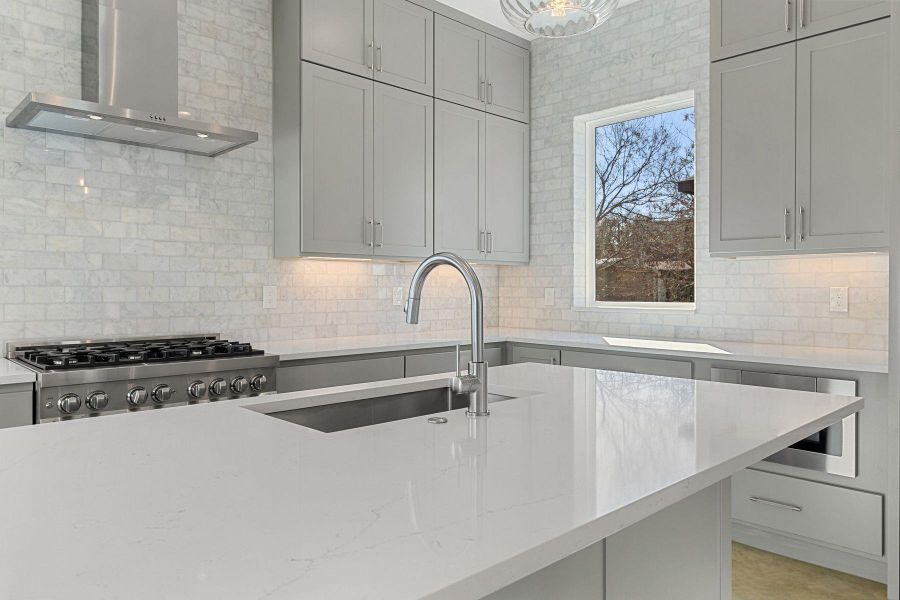 As you enter, you’ll be greeted by an atmosphere of luxury, highlighted by designer finishes throughout. The centerpiece of the home is the gourmet kitchen, boasting a striking marble backsplash, elegant quartz countertops, and stylish shaker-style cabinets. Whether you’re hosting dinner parties or enjoying a casual meal, the complete appliance package and spacious walk-in pantry make this kitchen a chef’s dream.