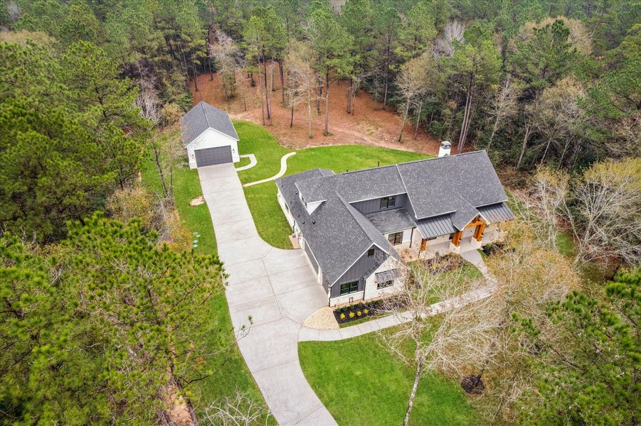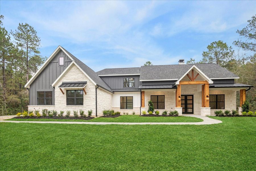 GORGEOUS ASTI II_TRINITY SIGNATURE HOMES CUSTOM FLOOR PLAN WITH A BARN/WORKSHOP ON 2 ACRES IN TEXAS GRAND RANCH! AMAZING Open Floor Plan with a REMARKABLE Family Room featuring a Custom fireplace, high ceiling and exposed beam! A Gorgeous kitchen that any cook would love with a Huge QUARTZ kitchen Island and Counters, SS appliances, Gas cook-top, beautiful cabinets, Custom backsplash, Farmhouse sink, Massive pantry & Casual Dining Area! SIZABLE secondary bedrooms! A Spacious Primary Suite with his and her WALK-IN closets! The Incredible Primary Bathroom Retreat has double sinks, separate Free-Standing tub & a Frame-less Glass Shower! Bonus Room Up with a 4th Bedroom and another Full Bathroom! Bonus Features: Barn/Workshop (24X38FT W/12Ft Ceiling) Study, Big Utility Room, 3-Car Side Swing Garage, Sprinklers and a Huge Covered Rear Porch with an Outdoor Grill! The Community is surrounded by beautiful Sam Houston Natural Forest & is close to the Huntsville State Park. Home Sweet Home!