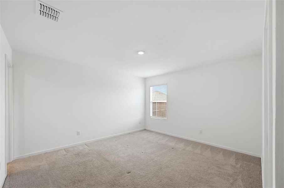 The private owner’s suite is tucked away in the rear of the home, offering a peaceful retreat complete with an en-suite bathroom and a walk-in closet. Two additional secondary bedrooms are located at the front of the home, providing comfortable space for family members, guests, or a home office.