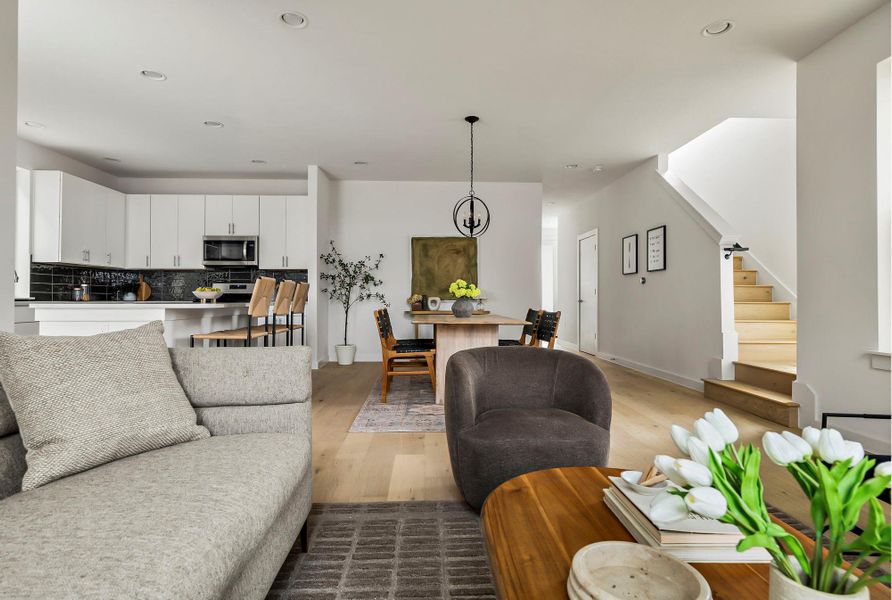 The LAST Barton in Grove Place-- a quiet, boutique 12-home community! #5 is a special corner lot home that is surrounded by 3 mature Oak trees for ample views of greenery and treehouse vibes. This turnkey 3-bedroom, 2.5-bath home featuring wide plank white oak floors throughout, soaring ceilings, and an abundance of low-e windows that bathe the space in natural light. The eat-in kitchen boasts quartz countertops, white shaker-style soft-close cabinetry, and overlooks the private backyard, dining room, and living room. Window treatments + refrigerator INCLUDED! The living room, primary suite, and one of the secondary bedrooms showcase soaring cathedral ceilings, creating an airy, treehouse-like ambiance. With its open-concept floor plan, abundant natural light, and a private backyard, this home seamlessly combines comfort, quality, and practicality in a way that feels intentional and timeless. Adding to the charm of Grove Place is a fully fenced park located in the northeast corner. Entirely shaded by oak trees, the park offers picnic tables, benches, a walking path, and a turfed courtyard—an inviting quiet space perfect for enjoying time with neighbors, pets, or family. Built by Prominence Homes, a trusted Austin builder since 2008, all homes are backed by a 1-2-6 Homes of Texas builder warranty. Contact the listing agent for more info. Preferred lender incentive = 1 Discount Point off rate + $2,500 Credit + Owner's Title Policy is paid by Seller. https://www.groveplaceatx.com/ ONLY 2 HOMES LEFT!