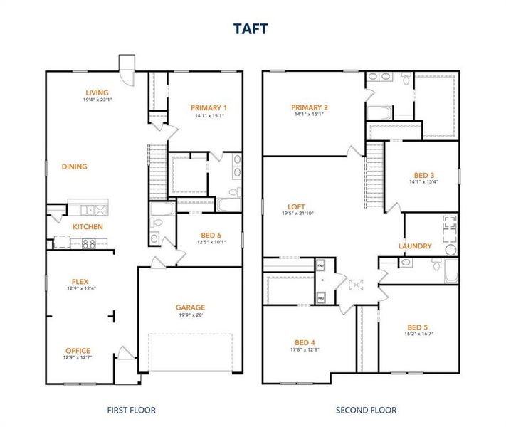MLS# 21106597 - Built by NHC - Ready Now! ~ The Taft Plan from our Liberty Series offers an impressive 6 bedrooms, 4 bathrooms, a 2-car garage, and 4,000 square feet of thoughtfully designed living space. The Taft features two primary suites, each with its own private bathroom—one located on the main level and the other on the upper level, providing ultimate flexibility and privacy. As you enter the Taft, you’ll pass a versatile office and a flexible room that can be customized to fit your needs. Continue into the open-concept living area, where the kitchen with an island overlooks the dining area and spacious family room—creating the perfect space for family gatherings and entertaining. The main level also includes a primary suite off the family room, an additional bedroom, and a full bathroom, offering plenty of space for everyone. Upstairs, the second primary suite offers a private retreat, while 3 additional bedrooms, another full bathroom, a laundry room, and a spacious loft complete the upper level.