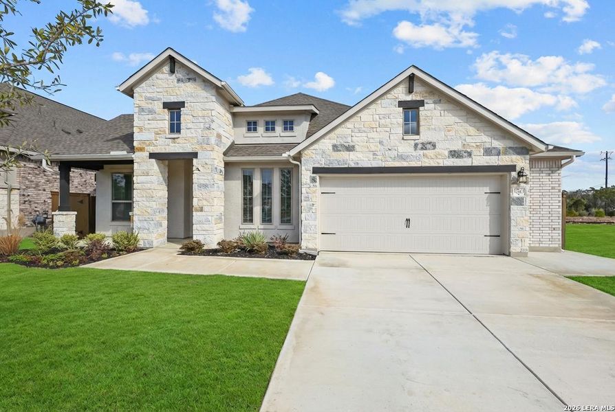 This home has great curb appeal with a stone/stucco exterior with an amazing layout and many custom features. As you step into this home, you are greeted by high, tray ceilings flanked with a private study. The gourmet kitchen is a chef's dream, equipped with an oversized granite island work center that overlooks the family room and formal dining room. The large flex room can be turned into a man-cave, workout room or hobby space. The primary retreat is complete with dual vanities, a separate oversized shower and a large closet. The covered, Texas-sized patio will make you enjoy fun evenings outdoors. This home is a certified Environments for Living Platinum home with a 3-year heating and cooling guarantee. Come visit today!