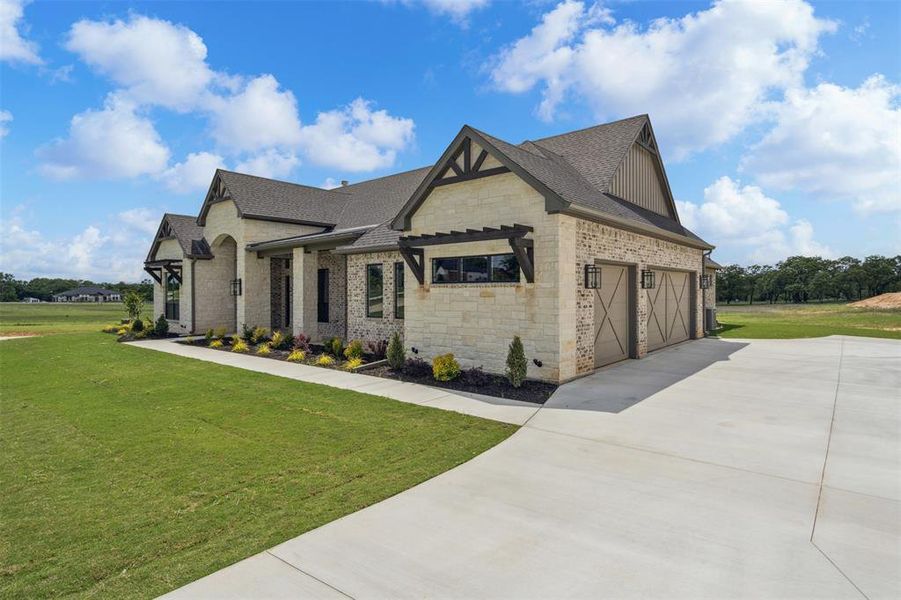 Exquisite New Construction in Estancia – Weatherford’s Premier Neighborhood, Welcome to your dream home in Estancia, Weatherford’s newest and most exclusive community. This turnkey masterpiece offers a thoughtfully designed floorplan, high-end finishes, and modern luxury—all nestled on a beautifully landscaped and sprinklered acre in a peaceful, yet convenient location. Step through stunning wrought iron double doors into an open, light-filled interior with soaring ceilings, extensive trimwork, and elegant, stately flooring. The spacious living area is anchored by a handsome stone fireplace, custom built-ins, and a wall of windows that flood the space with natural light. The living room flows seamlessly into the chef’s kitchen, where you’ll find quartz countertops, custom cabinetry, premium KitchenAid appliances, a gas cooktop, double ovens, and an oversized island and breakfast bar—perfect for gatherings and entertaining. The private primary suite is a luxurious retreat, featuring a spa-like bath with a massive walk-in shower and an oversized closet. Secondary bedrooms are split for privacy and each offer their own ensuite baths. A cozy home office with patio access makes for an ideal work-from-home setup. Built with energy efficiency in mind, this home includes spray foam insulation throughout. Step outside to a spacious covered patio where you can relax and take in stunning Parker County sunsets. Enjoy the perfect blend of serenity and convenience in Estancia—just minutes from Weatherford’s shopping, dining, and schools. This home has everything you’ve been waiting for and more!