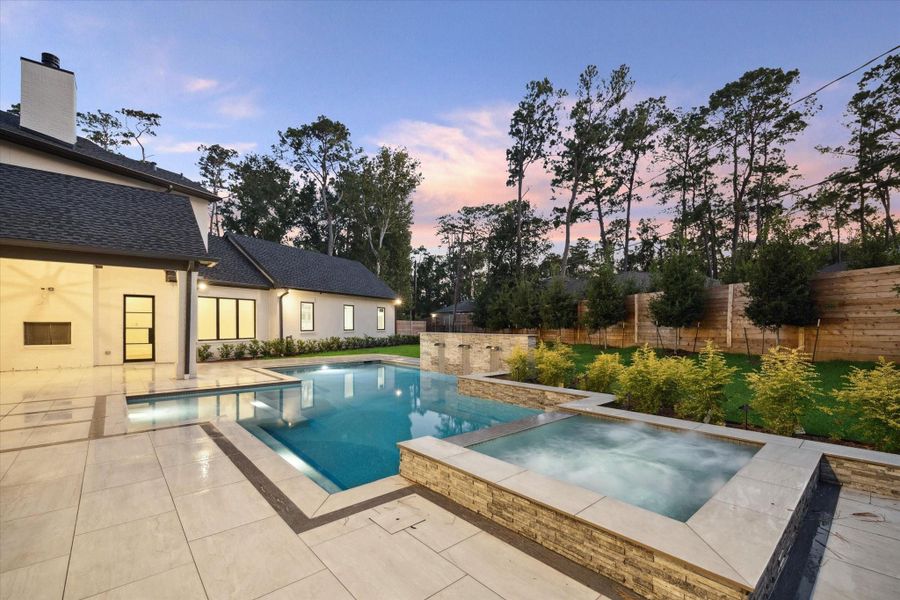 New construction in Hunters Creek Village. The home has 6 beds/6 full baths/2 half. A guest casita on the first floor with 8481 square feet of fabulous living space. Entering the spacious foyer, the library is on the right, dining on the left with easy access to the butler's pantry, prep kitchen, and wine room. Primary bedroom on the first floor as well as a secondary office, spacious laundry, and mud room. Secondary laundry upstairs and half bath. Automatic driveway gate leads to your oversized 3 car garage. Four bedrooms with private baths on the second floor. Wired for whole house Control system including security cameras with complete view of entire property. You will be wowed by this floor plan/flow on a 25,000 square foot lot complete with pool, patio, covered porch, pavilion, summer kitchen, whole home generator, and sprinkler system. Custom steel exterior doors, brick exterior. Soffit exterior lighting at front and side for beautiful nighttime curb appeal.
