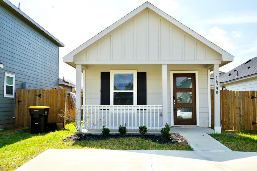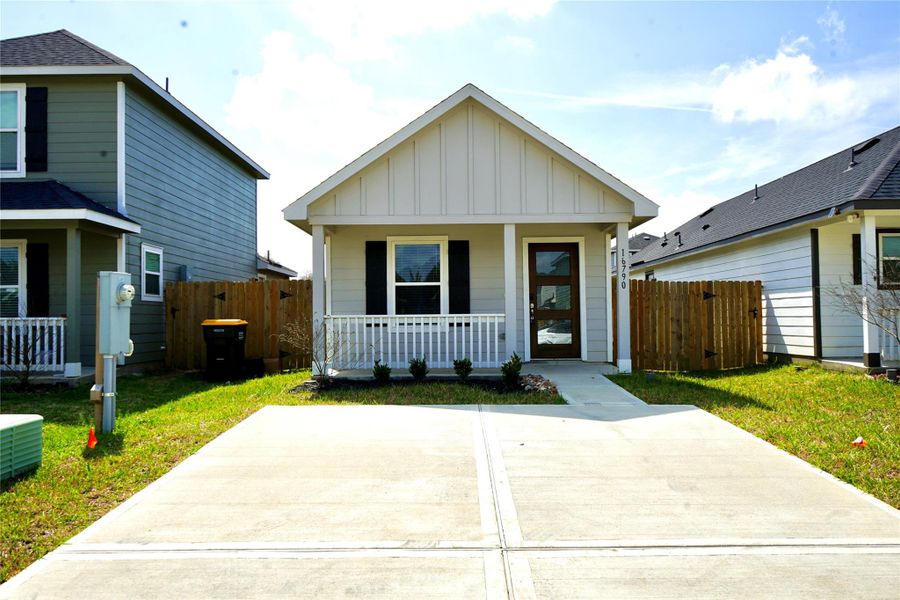 Looking for an affordable home in Conroe, TX? This cozy 1-bedroom, 1-bath home in the Marie Village community offers modern finishes and low-maintenance living in Montgomery County. Built in 2024, the home features an open layout with granite countertops, energy-efficient appliances, Low-E windows, and stylish updates throughout. Enjoy a welcoming front porch, private driveway, fenced yard, and washer and dryer included. Conveniently located with easy access to FM 1485 and nearby Conroe amenities. A great opportunity for first-time buyers, down sizers, or investors.