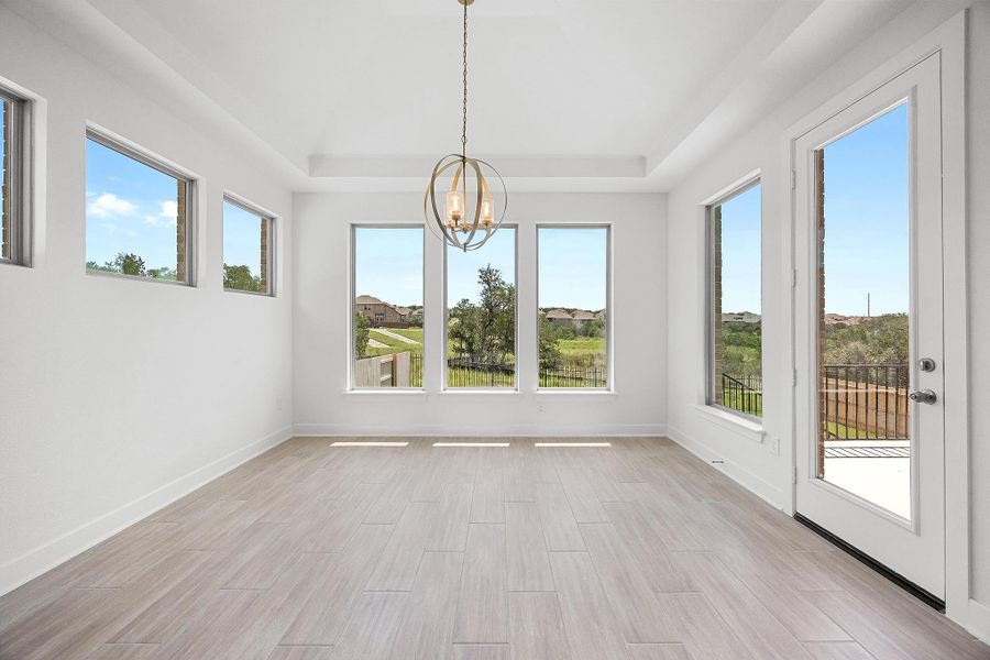 - Ceiling-HighWalk-In ClosetFoyerCoffered CeilingPantrySound System WiringDouble Vanity