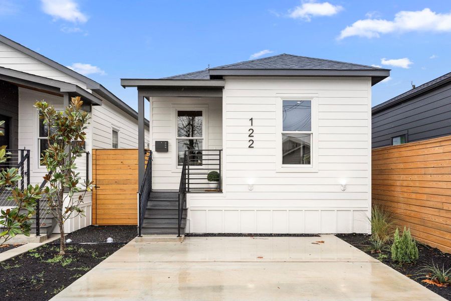 SELLER-PAID 2-1 BUYDOWN AVAILABLE! Located right next to Garden Oaks and Whole Foods. Low maintenance yard with a nicely designed landscaping that doesn't require yard cutting. It's beautifully designed and built to meet City of Houston Historic guidelines for Independence Heights. Interior has 10' ceilings, real wood double pane windows, high end cabinetry and finishes, high-end flooring, spacious bathrooms, & 3 generously sized bedrooms. This 2025 construction home is conveniently located right next to Garden Oaks, Oak Forest, Whole Foods, 610, and so much more. Primary bedroom suite features a sliding glass door that leads you into the bathroom, with a private water closet, an abundance of high end cabinetry, and an oversized shower with designer tile and 2 shower heads. Kitchen comes with a gas range and stainless steel fridge, microwave, and dishwasher. There's recessed lighting throughout the interior, and up-lighting at the front.