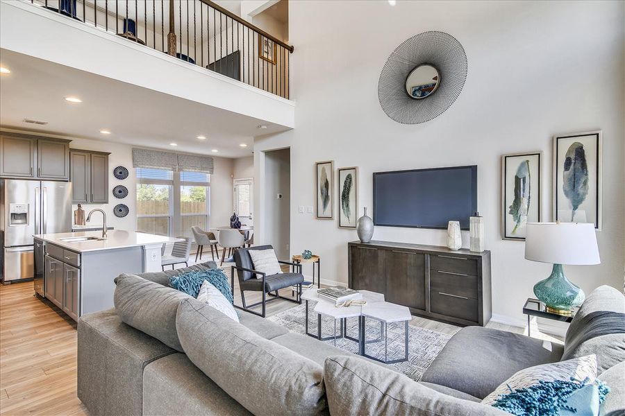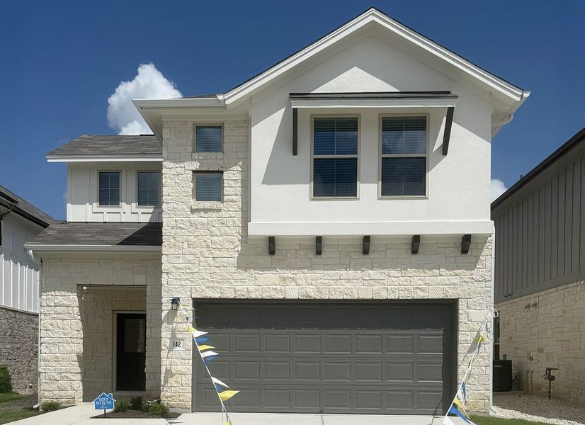 142 White Horse Drive offers space, style, and flexibility in the sought-after Crosswinds community. This two-story Conchos plan features 4 bedrooms, 3.5 bathrooms, and 2,434 square feet of thoughtfully designed living space. The main level includes a spacious kitchen with a large quartz island, walk-in pantry, and open sightlines to the family and dining areas. The first-floor primary suite includes a walk-in closet and a private bath with dual vanities and a walk-in shower. Upstairs, a large game room and separate media room create the perfect setting for relaxing or entertaining, alongside three additional bedrooms and two full baths. The covered patio provides a comfortable space for outdoor living, with a gas drop ready for grilling. Located within Hays ISD and just minutes from the Windy Point Amenity Center, this home delivers both everyday comfort and community connection. Images and videos shown might be of a similar home.
