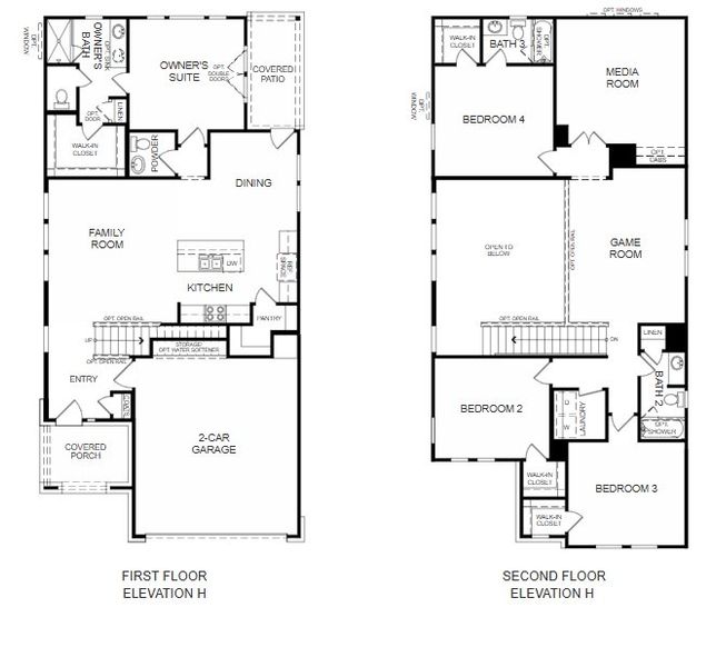 - KitchenPowder RoomGame RoomMedia RoomDining RoomFamily RoomOpen Concept FloorplanPrimary Bedroom Downstairs