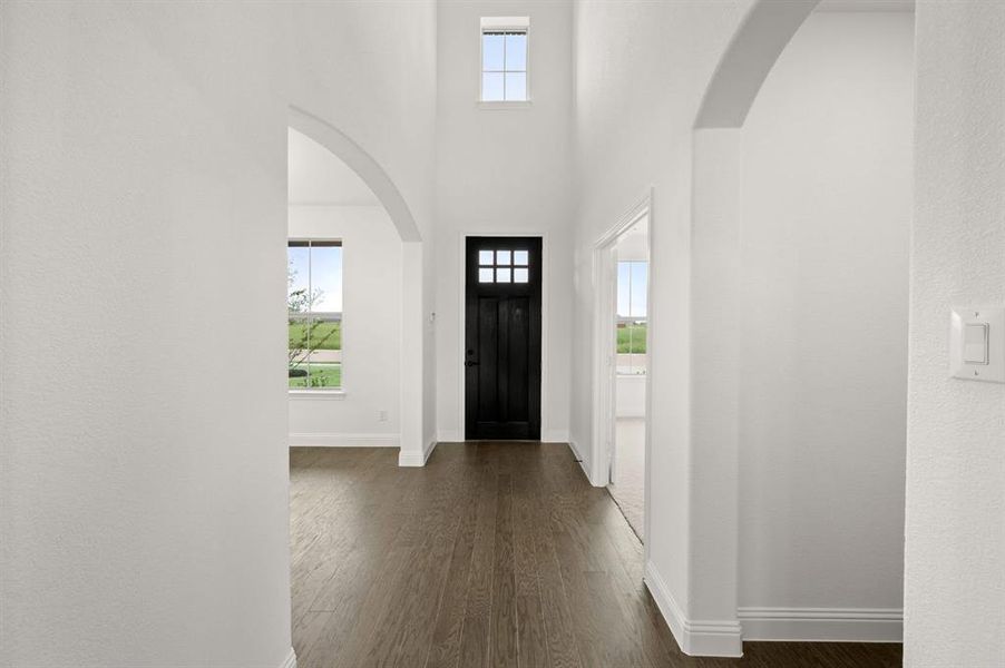MLS# 21076827 - Built by Risewell Homes - Ready Now! ~ This expansive home offers a traditional floor plan for those seeking classic style and easy daily living. Step in from the covered front porch and into the foyer which welcomes you into the private study. Finished with double doors, this space creates the perfect home office or a quiet area to enjoy hobbies. Across the foyer is the formal dining room filled with natural light, an ideal space for entertaining guests or enjoying everyday mealtime. Connected by a butler’s pantry and a large walk-in pantry is the open-concept kitchen. The kitchen features a large central island, stainless steel appliances, lots of cabinets, and ample counter and storage space. It also opens to a breakfast nook with a built-in window seat for additional seating. The breakfast nook also provides direct access to the rear-covered patio. The spacious family room features a wall of windows and a floor-to-ceiling stone fireplace which is a great space for friends and family to gather. Designed for optimal privacy and relaxation, the primary suite is tucked away from the family room. Enjoy a spacious room with vaulted ceilings and an adjoined primary bathroom featuring dual vanities, a large corner garden tub, a separate walk-in shower, a linen closet, and a large walk-in closet. For added convenience, a powder room and full-sized utility room with direct access to the two-car garage complete the lower level. The grand staircase leads up to a central landing.