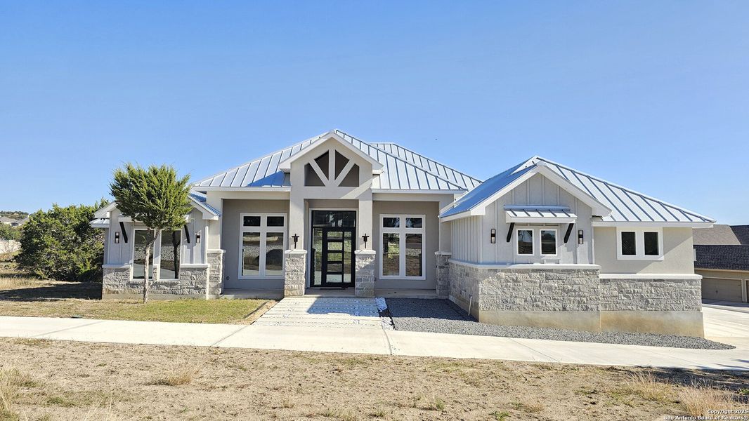 Nestled in beautiful hill country exquisite residence graces sought-after Vintage Oaks SD. SELLER IS OFFERING 50K IN FLEX FOR BUYER'S CHOICE. Boasts 4 BR 3.5 BA with a study & flex room. Home is epitome of modern elegance. It boasts high ceilings & ample space for your lifestyle. A grand beauty pivotal iron door welcomes you. All exterior doors including the office are iron crafted. The gourmet kitchen entails custom cabinetry, pot filler, spacious pantry, & large island that overlooks the living area & backyard. Master suite is haven of sophistication, adorned w/soaring ceilings & a lavish bath with luxurious soaker tub, dual shower heads, twin vanities, expansive walk-in closet, & abundant natural light. MB leads directly to patio. This open/spacious floor plan will accommodate entertaining & relaxation inside or out. Enjoy the Texas-size patio with a wood fireplace & outdoor kitchen for cookouts. Enjoy your evenings with cool breezes and relaxation. Very close proximity to vineyards & wineries highlighting the unique lifestyle in NB's wine regions.
