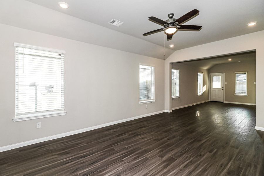 Charleston Heights features modern craftsman-designed homes, quick access to 288, easy commutes to Texas Medical Center, and close proximity to Pearland Town Center. The Pinewood plan is a 1-story home with 3 bedrooms, 2 baths, and covered patio. It features a spacious kitchen overlooking a large dining area. The house also includes LVP flooring throughout, granite countertops in bathrooms, stainless steel appliances and sod front and back.