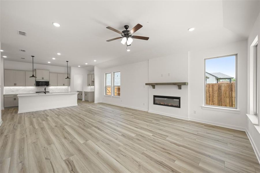 MLS# 20872548 - Built by HistoryMaker Homes - Ready Now! ~ This beautiful three-bedroom, 2.5-bath home offers the perfect blend of comfort and sophistication. The open floor plan is highlighted by luxury vinyl wood plank flooring throughout, with plush carpeted bedrooms for added coziness. The spacious kitchen is a chef’s dream, featuring a large island, built-in appliances, white quartz countertops, a stylish backsplash, and an oversized pantry for all your storage needs. A game room provides the perfect space for entertainment, while the decorative tile in the utility room adds a touch of charm. The living room features a beautiful fireplace. With its modern glass front door and thoughtfully designed layout, this home is as inviting as it is functional. Don’t miss your chance to own this stunning home—schedule your tour today!