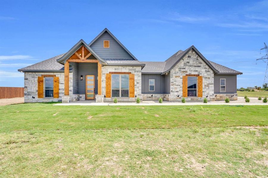 Semi-Custom Farmhouse Chic on 1 Acre — No Restrictions! Your dream home is waiting — and you still have time to make it your own! This stunning 4-bedroom, 2.5-bathroom semi-custom home sits on a full acre in the desirable Blackberry Springs community, just 30 minutes from Downtown Fort Worth. With no restrictions and no HOA, you can bring your horses, pigs, cows, and more! Step inside to discover a bright, open-concept layout designed for modern living. The spacious living room features soaring ceilings and flows seamlessly into the gourmet kitchen, complete with a large island perfect for entertaining, granite countertops, and plenty of cabinet space. Each of the four bedrooms is generously sized, offering comfort and flexibility for families of all sizes. Outside, enjoy peaceful country living from your covered back patio overlooking the backyard. The side-entry garage adds curb appeal while providing practical storage. The best part? There’s still time to pick your colors, flooring, and finishes to make this home truly yours. Don’t miss out on this rare opportunity to own a piece of unrestricted Texas countryside with all the modern farmhouse charm. Schedule your showing today and start customizing your dream home!