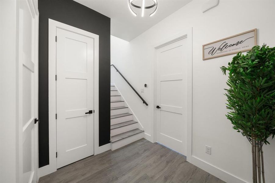 LEVEL ONE: A sleek modern pivot door is your introduction to Vertical Luxury. The spacious and secluded first-floor suite is your ultimate professional work from home haven or it can be used as an income producing possibility.