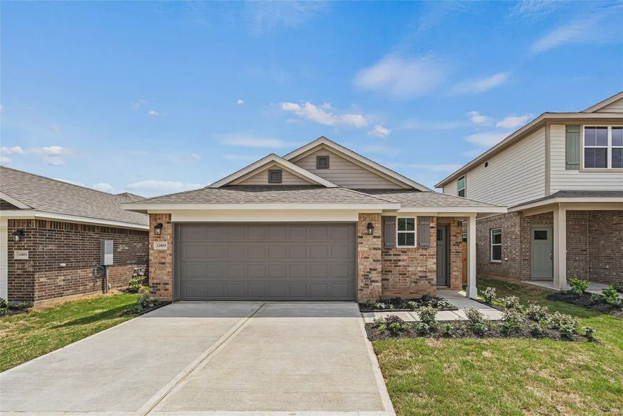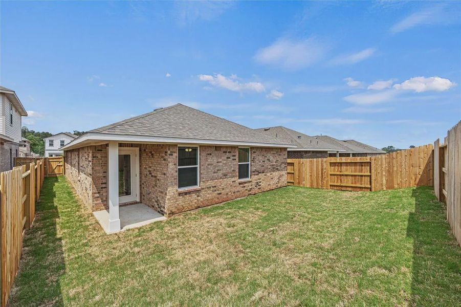 Discover a newly constructed community in Conroe, Texas. This beautiful 1,700 square foot home features four-sided brick exterior, offering both durability and timeless curb appeal. Also, features 4 spacious bedrooms and 2 baths. The spacious primary suite boasts a luxurious 5-foot shower with a glass door in lieu of a garden tub, complemented by a stylish backsplash for a modern touch. Enjoy an open-concept living, dining, and kitchen area, perfect for entertaining. The kitchen boasts elegant granite stone countertops, luxury vinyl plank flooring throughout kitchen, equipped with sleek stainless steel appliances including, refrigerator a chic designer backsplash, and neutral tones throughout, providing a warm and inviting atmosphere. Enjoy outdoor living with a fully sodded backyard and covered front & rear porch, perfect for family gatherings or quiet evenings at home. This home beautifully combines style, function, and comfort in one perfect package!
