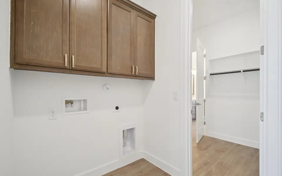 With two bedrooms and two baths, the Rhodes packs a lot of features into one compact floor plan. Our favorite feature might be the optional convenience door between the oversized Primary closet and the utility closet, making laundry a breeze. The open floor plan is ideal for entertaining. The kitchen includes a dining nook with windows on two sides as well as a large walk-in pantry big enough to hold all your dry goods and seasonal serving dishes alike. Don't miss the mud room off the garage, perfect for dropping bags, sports equipment, and more.